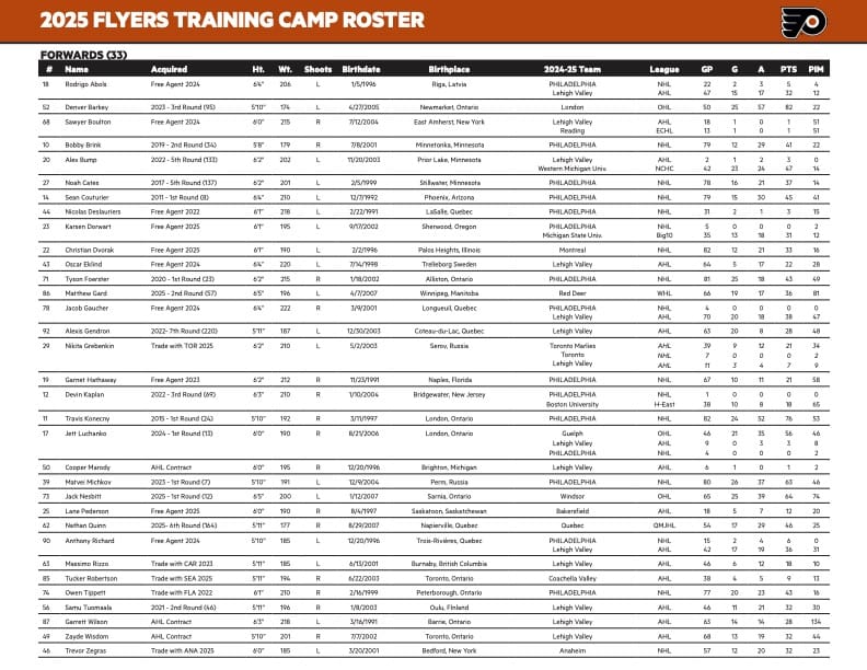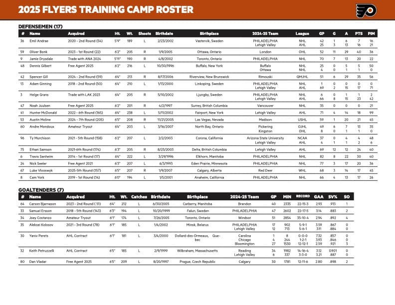 Flyers Release 2025 Training Camp Schedule and Roster
