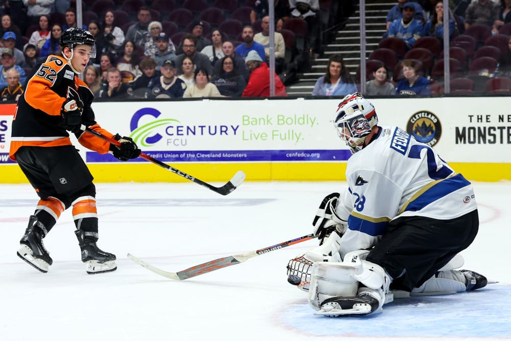 Since then, the 20-year-old has turned pro, and in his first season with the Phantoms in 2025-26, he has 7 goals and 9 assists for 16 total points in 26 games.